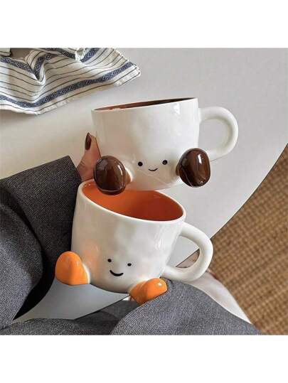 1 件陶瓷可爱足迹设计咖啡杯,高品质美观牛奶杯,大容量茶/咖啡杯,家居装饰,送给男朋友/女朋友的礼物,生日,派对用品 - 彩色 - 查看 1