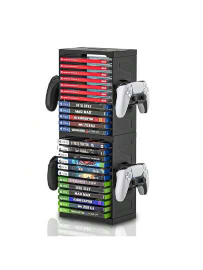 Video Game Storage, PS5 Game Storage Tower, Game Storage Stand For X-Box And N-Intendo Switch (For 24 Game Boxes) - 黑色 - 查看 1
