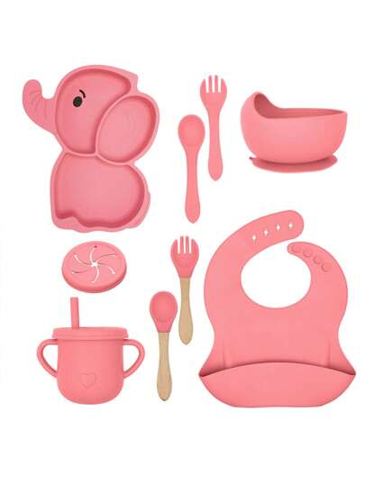 1/2/6/9件套婴儿硅胶喂养套装,卡通大象分隔餐盘和吸盘碗,双把手奶瓶,防漏围兜,木柄叉勺,自主进食训练套装,可放入洗碗机和微波炉,是送给幼儿的完美节日礼物。 - 彩色 - 查看 12