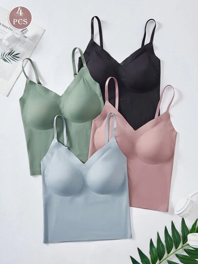 四件套女士无缝一体式罩杯舒适褶皱可调节肩带真丝衬衫 - 彩色 - 查看 4