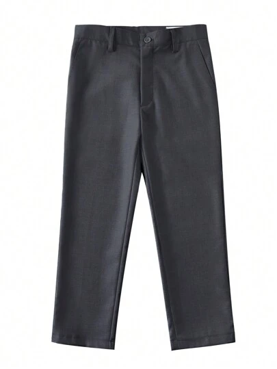 男童正装裤,可调节腰围,平面前片设计,适合婚礼、学校等场合穿着,深灰色,尺码 6-16 岁 - 深灰色 - 查看 1