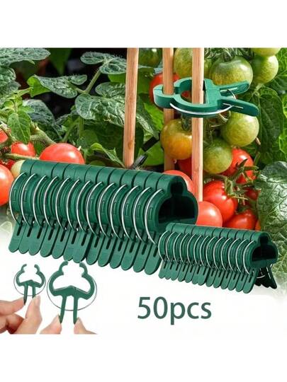 50 个装,攀缘植物夹,小/大号植物夹,嫁接夹,花园夹,适用于番茄笼,番茄夹植物支撑夹适用于竹桩、攀缘植物、藤蔓、软植物和花架,适用于植物茎、茎 - 綠色 - 查看 1