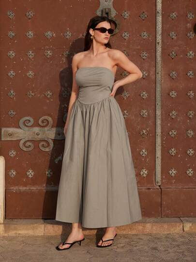 Maija 女士夏季假日抹胸连衣裙 - 卡其色 - 查看 1