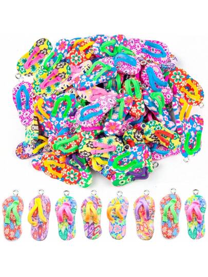10/20 件随机迷你人字拖吊坠粘土人字拖饰品彩色聚合物粘土迷你拖鞋女士珠宝首饰制作项链耳环手链工艺品 - 彩色 - 查看 7