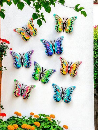 8 件金属蝴蝶墙面艺术装饰,3D 悬挂蝴蝶饰品,适用于花园、庭院、栅栏、户外彩色装饰蝴蝶、室内/室外装饰、节日/派对礼物 - 彩色 - 查看 3