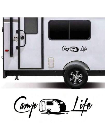 创意露营生活房车卡车车身贴纸房车大篷车面包车旅行装饰贴花汽车乙烯基改装配件装饰 - 56x16 厘米/22.05x6.30 英寸 - 查看 1