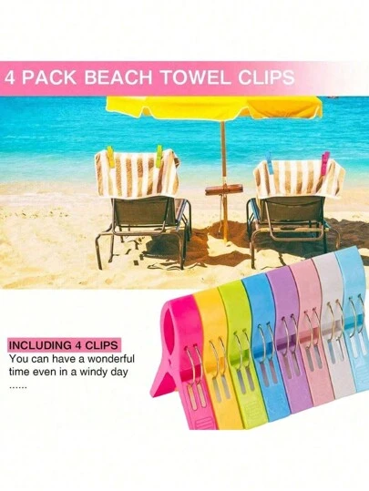 8/4 件沙滩巾夹、巡航沙滩椅毛巾夹、衣夹、沙滩巾架,防止毛巾被风吹走,耐用且颜色鲜艳,适合海滨、海滩、露营、烧烤用品、圣诞节和万圣节礼物 - 彩色 - 查看 4