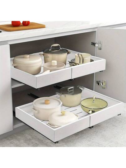Youyijia Pull Out Cabinet Organizer, Adjustable Expandable Slide Out Drawer, Roll-Out Sliding Drawer Organiser Shelf For Kitchen & Bathroom Storage, Easy Installation With Adhesive Film - 白色 - 查看 1