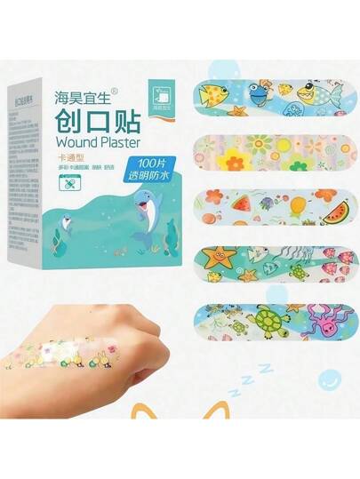 100 片可爱卡通防水绷带 - 透气、止血、温和亲肤,适用于运动、医疗用途和日常伤口护理 - 可爱的设计为您的每一天增添光彩,多种图案样式随机发送,用于急救包 - 白色 - 查看 5