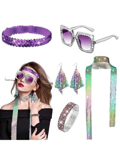 1970s Disco Accessories Disco Costume Set With Sunglasses Long Scarf Earrings - 彩色 - 查看 1