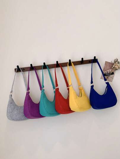 1pc 时尚纯色时尚包包韩国新款石头纹腋下包休闲单肩手提包,顺滑拉链,多种马卡龙色可选,时尚文艺清新风格,适合逛街旅行通勤,月牙包时尚休闲复古毛毡腋下包 - 純色腋下包 - 查看 1