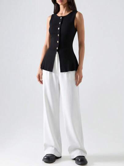 LYSMO 女士针织纯色休闲上衣,适合夏季 - 黑色 - 查看 1