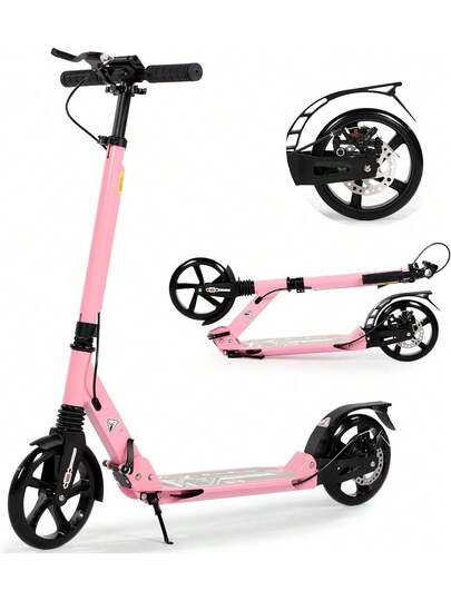 Adult Kick Scooter With Disc Handbrake, Foldable Adjustable Urban Scooter With Dual Suspension, 200mm Big Wheels For Adults And Teens - 粉色 - 查看 1