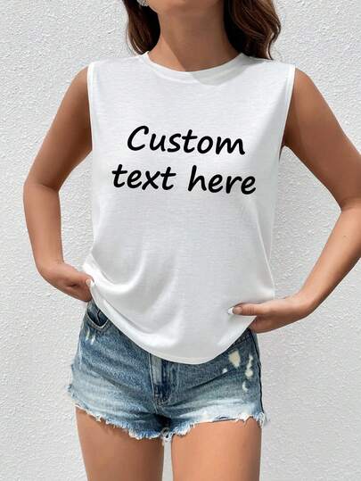 定制女式背心,添加您的文字,选择您喜欢的颜色和字体,设计您自己的个性化印花短袖 T 恤,周年纪念礼物,情人节,定制礼物,情人节,定制女式上衣,送给女朋友/家人的礼物,母亲节礼物,生日礼物,结婚礼物等。文字定制,上衣,女式上衣文字印花女式背心,定制女式上衣,定制夏季女式短款上衣 - 白色 - 查看 1