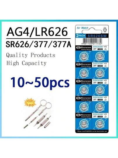 10-50 粒 AG4 纽扣电池 377 SR626 SR626SW 电池纽扣碱性电池 177 376 626A LR66 LR626 用于手表玩具时钟,带 1 个螺丝刀礼物 - AG4 LR626 - 查看 1