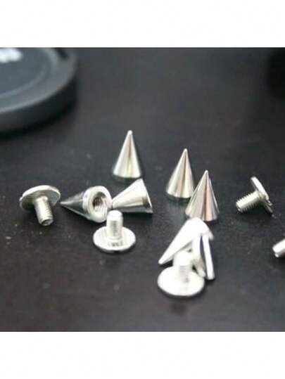 100 件银色朋克锥形耳钉和尖钉 - 7x10 毫米螺丝背 - 银合金 - 非常适合皮革、包袋和鞋子 - 銀色 - 查看 7