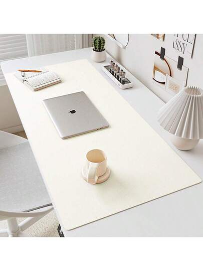 双面桌垫超大防尘防水护眼电脑垫 PU 皮革纯色鼠标垫,学校用品,返校 - 白色 - 查看 1