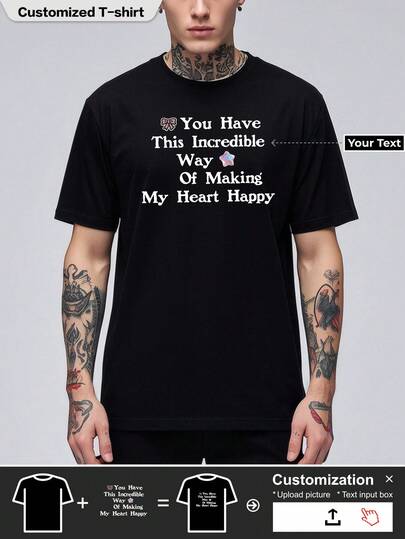 定制个性化T恤,男士运动T恤,透气,圣诞礼物, - 添加图片(女朋友,妻子)来设计您自己的个性化印花T恤 - 黑色 - 查看 1