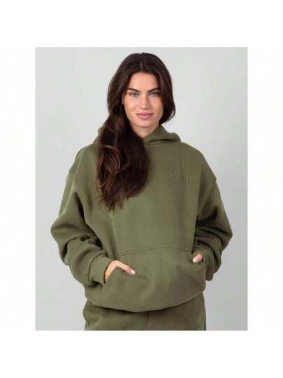 Oversized Minimalist Hoodie - 橄欖 - 查看 1
