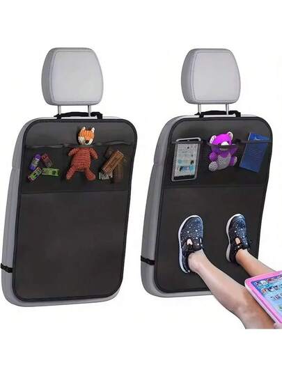 1 件汽车座椅靠背收纳整理器(3 个口袋)、大号防踢垫座椅靠背保护套、汽车座椅靠背保护套(防尘防刮)、汽车内饰配件座椅靠背收纳 - 均碼 - 查看 2