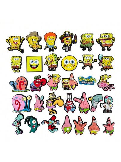 12/20/32 件可爱海绵宝宝图案鞋饰套装,PVC 鞋饰,适用于沙滩包,鞋饰,生日圣诞节情人节万圣节派对礼物 - 彩色 - 查看 10