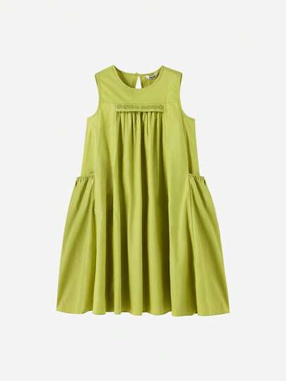 Annil 童装女童中大童连衣裙纯色连衣裙夏季 - 綠色 - 查看 1