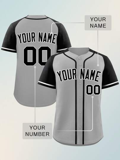 可定制的灰色棒球球衣,个性化球队昵称和号码,轻便舒适的球衣,热转印运动服 - 灰色 - 查看 1