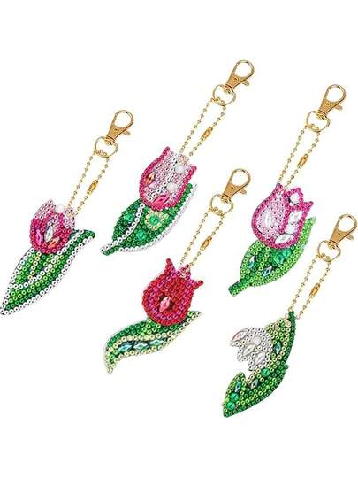 5 件/套 DIY 钻石画钥匙扣 - 花卉图案、DIY 装饰物品、钻石画工艺用品、手工马赛克画钥匙扣 DIY 套件(适合初学者)、创意手工工艺礼品套装 - 彩色 - 查看 5