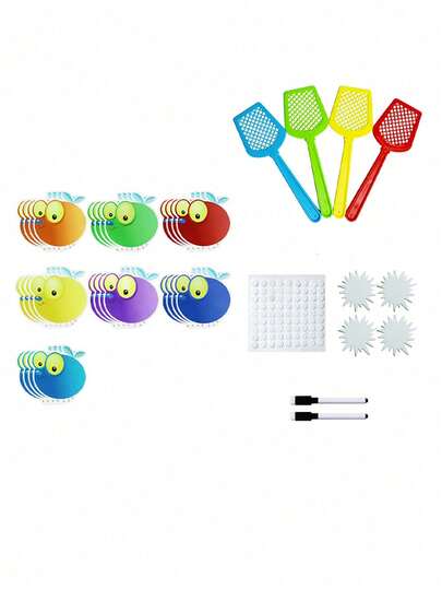 hoojojo 28 张 DIY 空白卡片,7 种颜色,苍蝇卡,4 个苍蝇拍,单词卡,词汇卡,可擦写卡片,苍蝇拍认知游戏,教室,家居,返校,派对,教学工具,万圣节礼物 - 彩色 - 查看 7
