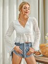 ROMWE Kawaii 白色波西米亞揉皺純色女士上衣