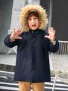 SHEIN 男童连帽泰迪熊内衬保暖内衬外套