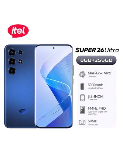 itel Super 26 Ultra 双卡 4G Android 15 智能手机 8GB RAM 256GB,6000mAh 电池,Type-C 充电,50MP 摄像头,指纹解锁 - 藍色 - 查看 1