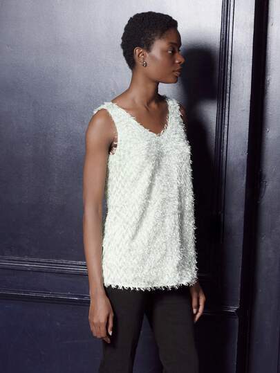 lacRébo 薄荷绿无袖上衣,采用纹理面料,深V露背设计,适合派对场合 - 薄荷綠 - 查看 1