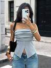 Siren Gaze 女士全新灰色无袖裹身短款上衣