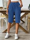 Breezaya 女士纯色抽绳休闲松紧腰短裤,适合假期穿着