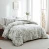 3件套鹿鸣卷曲花卉植物印花灰色柔软透气被套套装,包含被套和枕套,适用于双人/大号/特大号床,四季皆宜,家居装饰,礼品