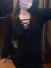 Joudiya 女士长袖纹理毛绒系带领口抽绳喇叭袖上衣,粉色,秋冬Y2K风格