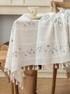 1 件优雅银色刺绣花卉流苏桌布,波西米亚 3D 钩针几何矩形防尘罩,适用于餐桌、咖啡桌、钢琴 - 适用于餐厅、厨房、派对、婚礼、酒店、感恩节秋季装饰、书桌、梳妆台