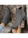 CUCCOO BIZCHIC 方头粗跟踝靴和切尔西靴,弹性侧边松紧带通勤短靴,秋冬