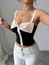 Franclia 女士时尚休闲缎面蝴蝶结纯色吊带背心