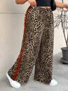 SHEIN Frenchy 大码纯色拼接前系带腰简约休闲裤,适合日常穿着