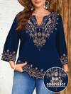 EMERY ROSE 大码蓝色仿刺绣花卉休闲度假上衣