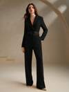 BizChic 女士纯色披肩领纽扣细节连体裤,都市通勤商务休闲派对晚会连体裤