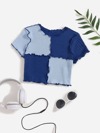 SHEIN Leap Crew 青少年女孩華夫格編織荷葉邊木耳邊傘狀下擺T恤