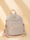 女士经典PU双肩包,时尚复古大容量双拉链双肩包,多口袋设计,学院风双肩包,适合上学、度假、旅行、校园使用