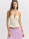 Nöista 深色结构化牛仔束身胸衣式上衣,采用不对称细节和修饰腰身的设计,是一款百搭单品,可提升冬季服装的格调,并可与裙子或裤子完美搭配,打造现代圣诞造型或时尚新年造型。