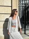 Pariaura 女士长款灰色大衣,纽扣闭合,秋冬女装