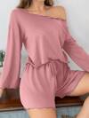 Snug Reverie 宽松落肩粉色条纹印花翻领短袖睡衣套装(女款)