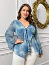 SHEIN ICON 大码女式露肩褶皱扎染印花针织上衣