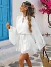 Vivid Eden 女士休闲纯色收腰长袖短裙、度假装、狂欢装、女士早午餐装、秋季女装、女士机场装、波西米亚风女装